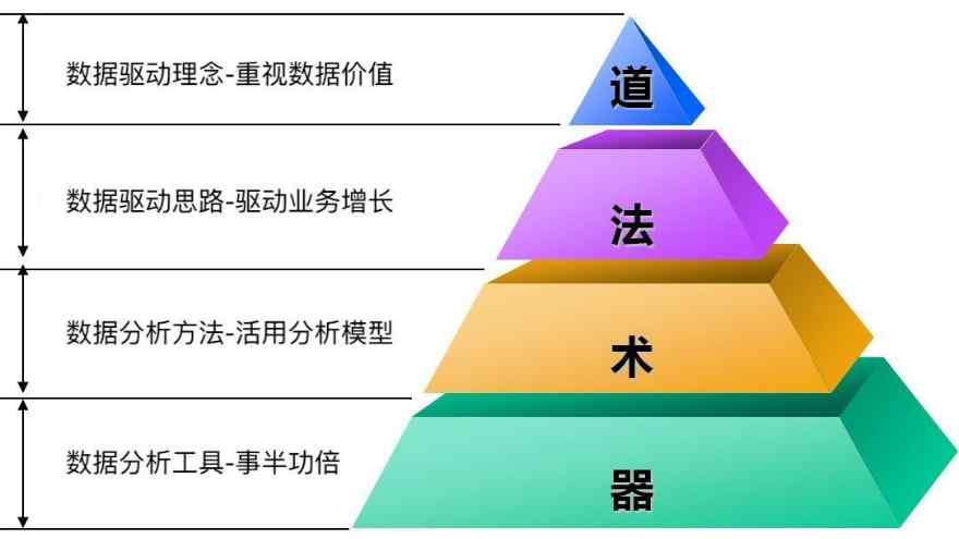 企業數據分析通過道、法、術、器,分層次由表及里,從發現、分析、預測、指導方面,構建全面深入的企業數據分析體系。