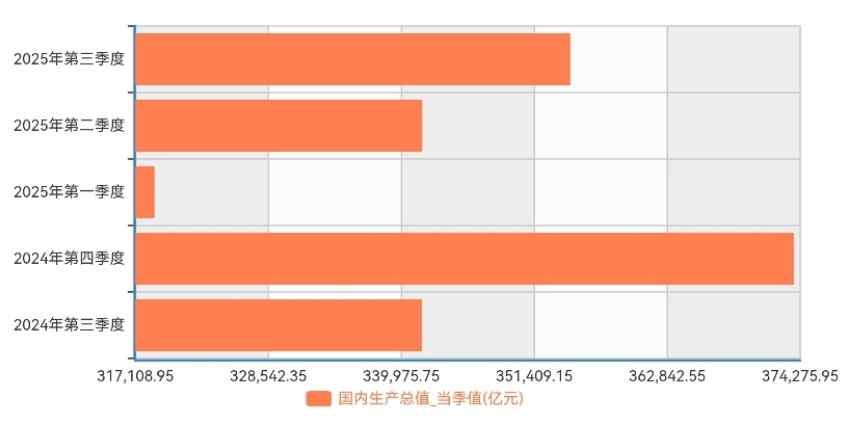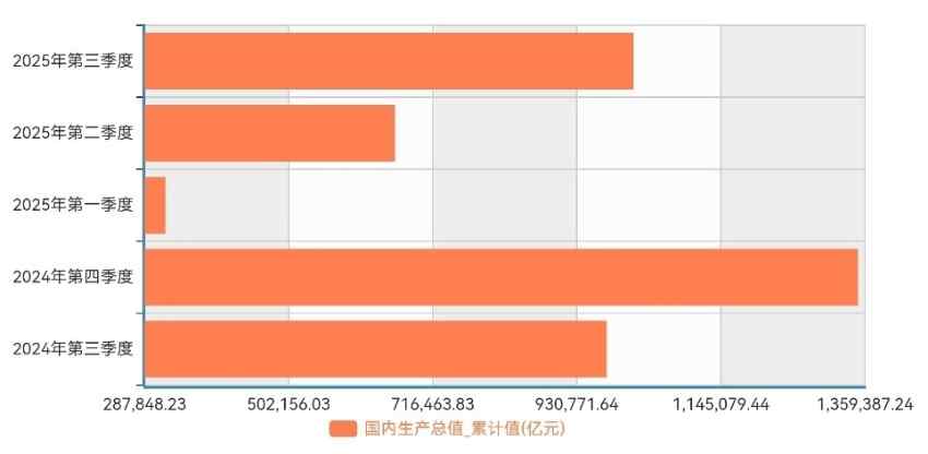截至2025年第三季度,國內GDP總產值101.5萬億。并且每個季度的當季產值呈上升趨勢,另外按照2024年第三季度和第四季度的對比,2025年第四季度,當地產值也有望創造新高。