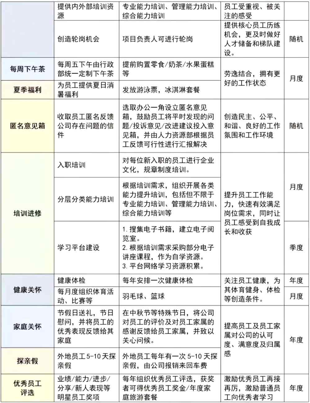 員工關愛和員工關懷方案:試用期關懷方案、在職員工關懷方案、離職員工關懷方案、公司活動一覽表