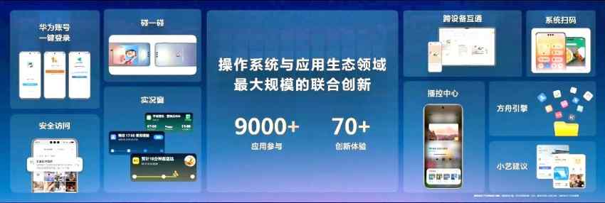鴻蒙操作系統(tǒng)與應用生態(tài)實現(xiàn)了大規(guī)模的聯(lián)合創(chuàng)新,實現(xiàn)了包括超過9000多個應用,以及超過70多項用戶體驗提升。