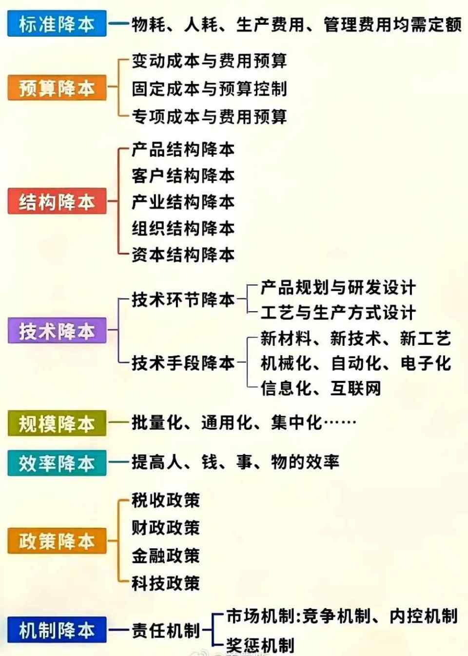 ⑦政策降本:稅收、財政、金融、科技政策等,在準許的和優惠的框架內,實現低成本的運作和管理。