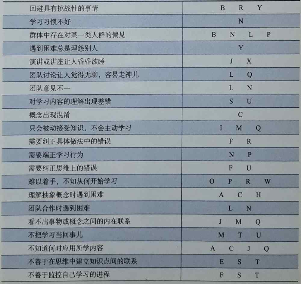 在《科學(xué)學(xué)習(xí)》一書中作者講了26種科學(xué)學(xué)習(xí)的方法,并用26個(gè)字母的單詞分別概括這些方法的意思。