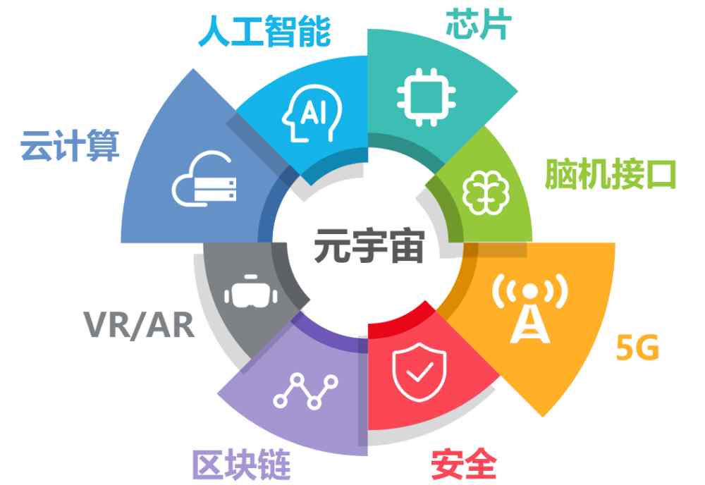 構建元宇宙的其它核心技術包括VR/AR、云計算、人工智能、芯片、腦機接口、5G、安全、區塊鏈等。