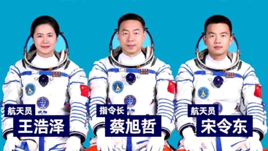 本次發(fā)射任務(wù)航天員乘務(wù)組三人,分別為蔡旭哲(指令長(zhǎng))、王浩澤(航天員,女)、宋令東(航天員)。