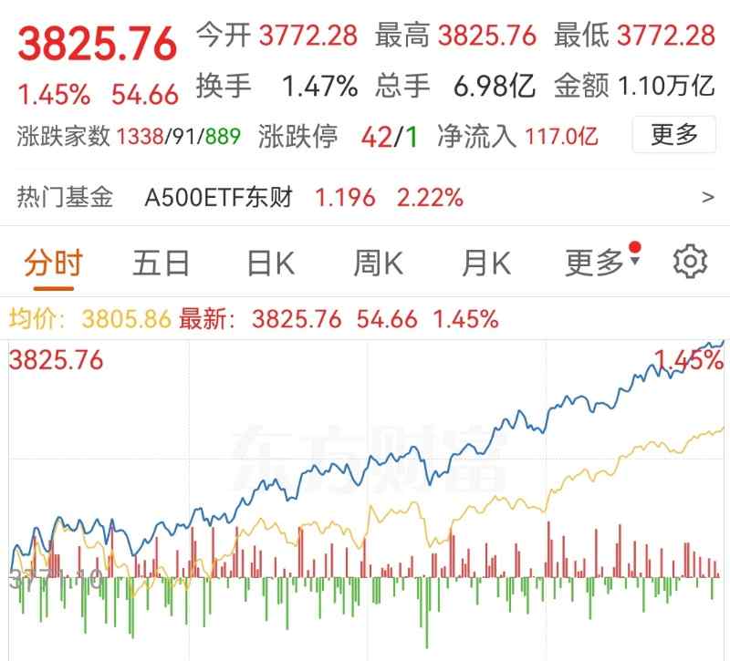 2025年8月22日,上證指數穩定上漲,站上3800點,滬市成交金額1.10萬億,有42家漲停,凈流入117.0億元。