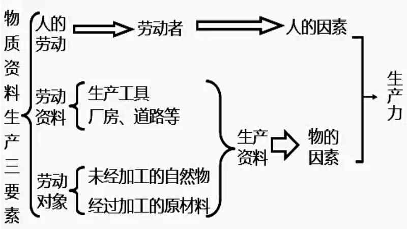 生產(chǎn)力三要素又可以概括的分為人的因素和物質(zhì)的因素。人的因素是指人的勞動(dòng),也就是勞動(dòng)者。物質(zhì)的因素包括勞動(dòng)資料和勞動(dòng)對(duì)象。