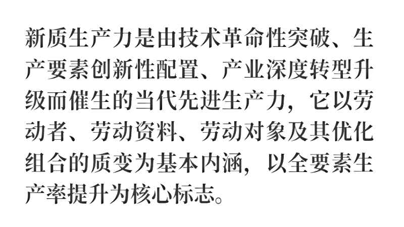 新質(zhì)生產(chǎn)力是習(xí)主席2023年9月在黑龍江考察期間新提出,也是2023年熱門(mén)詞匯之一。2024年李強(qiáng)總理強(qiáng)調(diào)要“大力推進(jìn)現(xiàn)代化產(chǎn)業(yè)體系建設(shè),加快發(fā)展新質(zhì)生產(chǎn)力”。